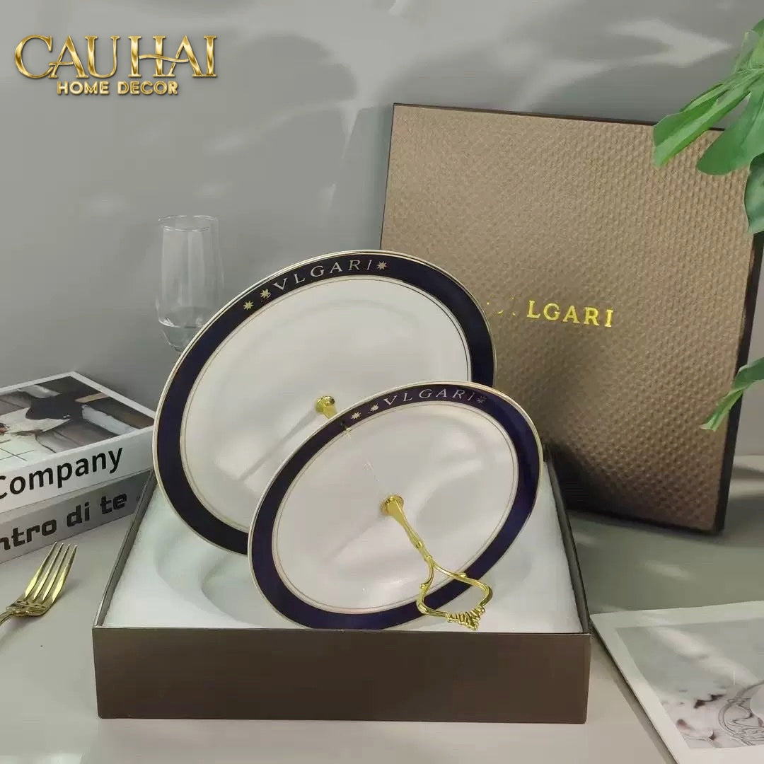 Maison Couture - Đĩa 2 Tầng Belle Vie Luxe Blanc & Bleu Minuit Signature – Deux Niveaux