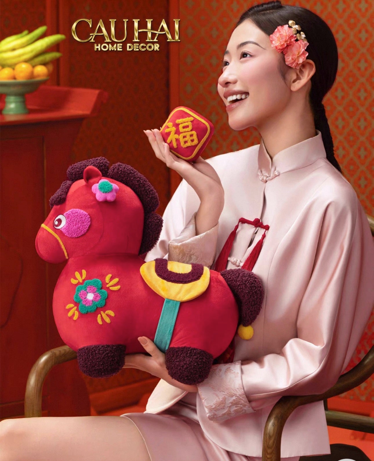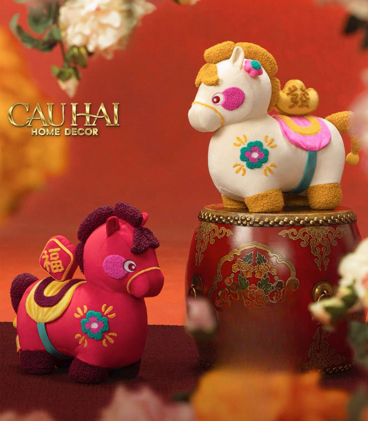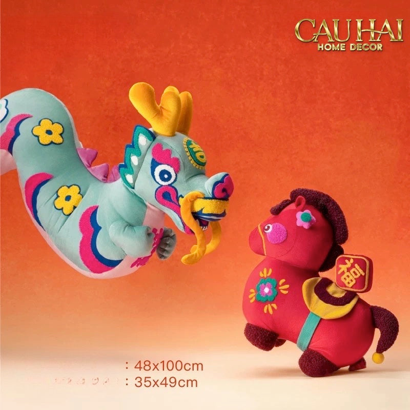 Tết Couture - Gối Chu Mã Cát Tường Tufted Art Cushion 38x39