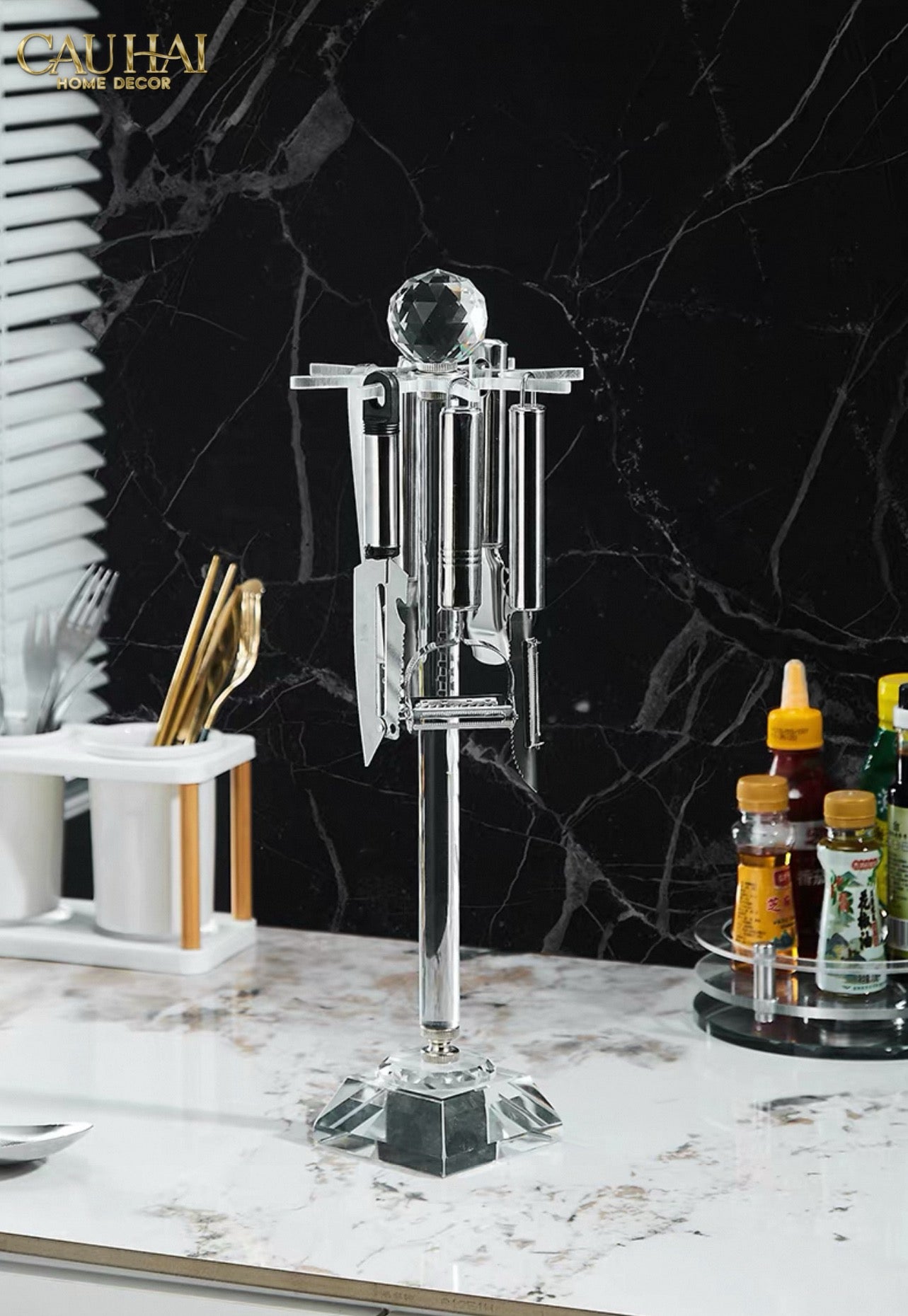 Glorious Tornado H41 là mẫu kệ pha lê xoay 360° đa năng mang vẻ đẹp hiện đại, tinh xảo và đầy tính ứng dụng. Thiết kế mô phỏng chuyển động của lốc xoáy trong không gian, hòa quyện giữa chất liệu pha lê trong suốt và kim loại ánh bạc – tạo nên hiệu ứng phản quang sang trọng, tựa dòng xoáy ánh sáng chuyển động trong căn bếp hoặc quầy bar.