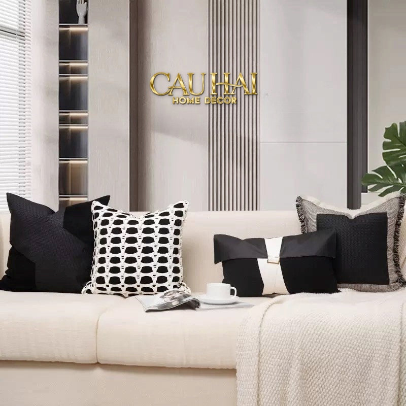 GỐI TWEED LUX LEATHER SAVOIR ENSEMBLE 30X50
