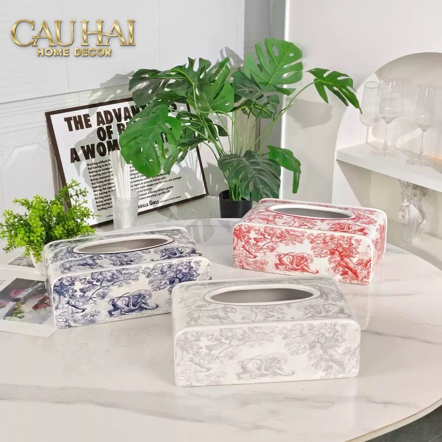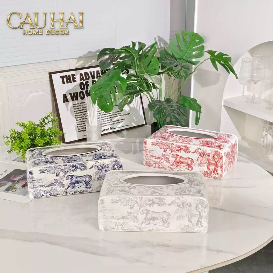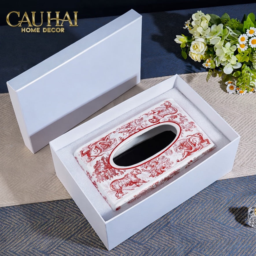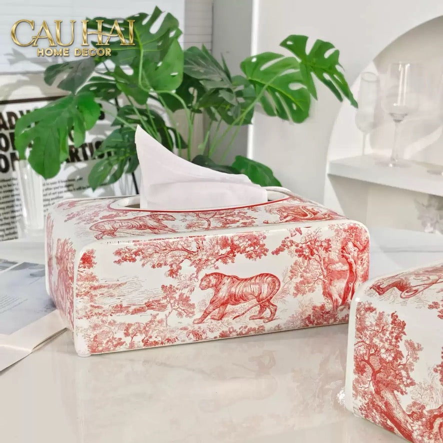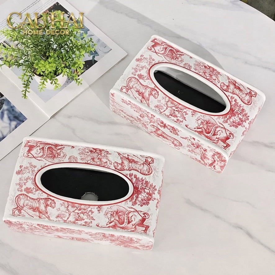 Maison Couture - Hộp Khăn Giấy D.O Gốm Sứ Toile de Jouy Red Porcelain Tissue Box