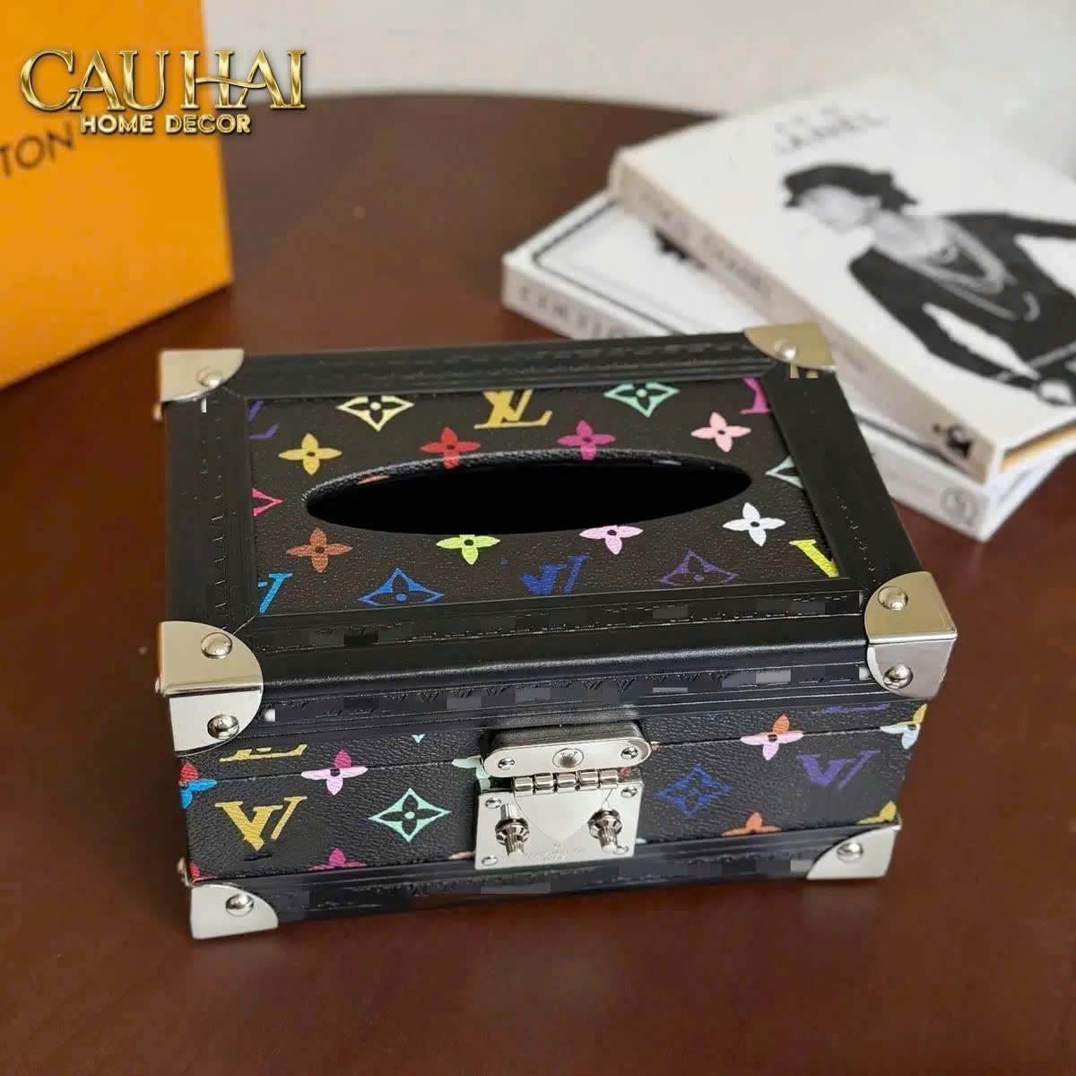 HOME COUTURE - HỘP KHĂN GIẤY LOUIS TRUNK MULTICOLORE - NOIRE FULL BOX