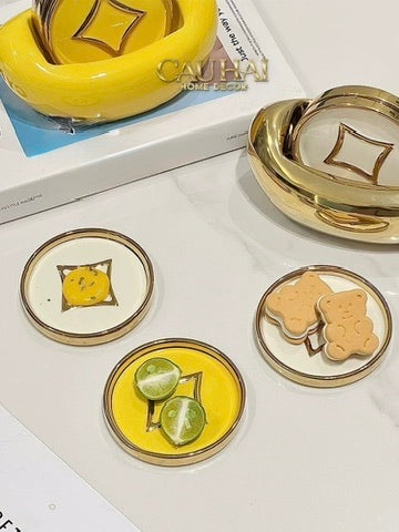 Tết Couture - Set 4 Lót Ly Sứ Đồng Tiền Tài Lộc Golden Coin Ceramic Glasses Coaster