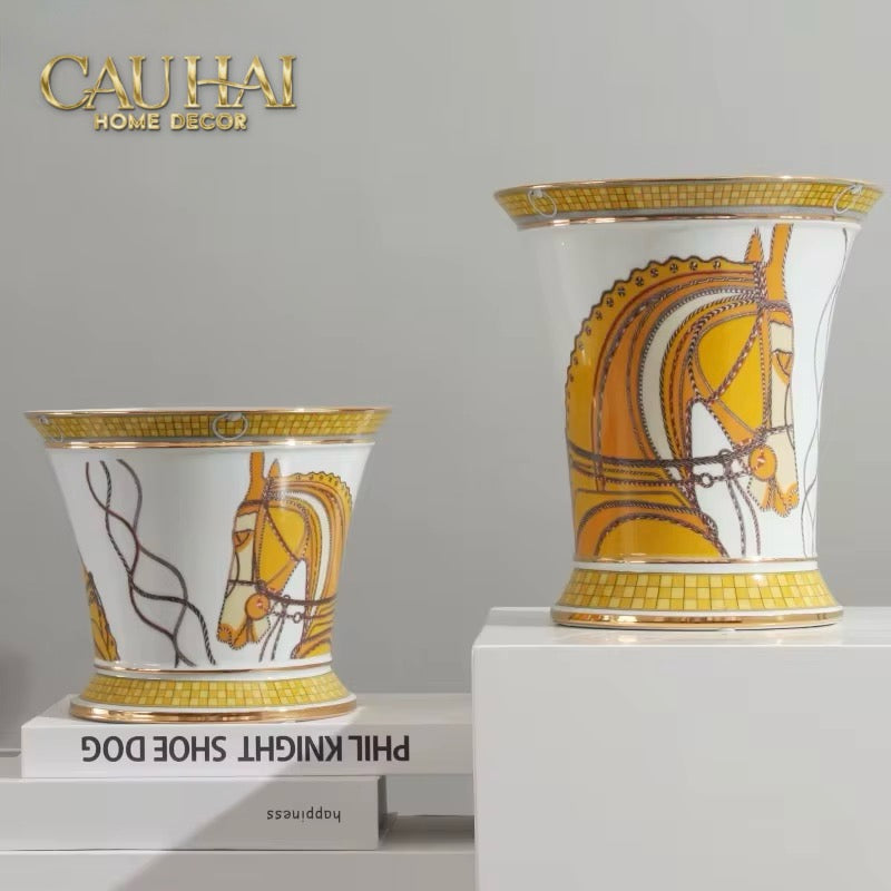 Bình Hoa Sứ Chiến Mã Hoàng Gia - Motif Équestre Royal