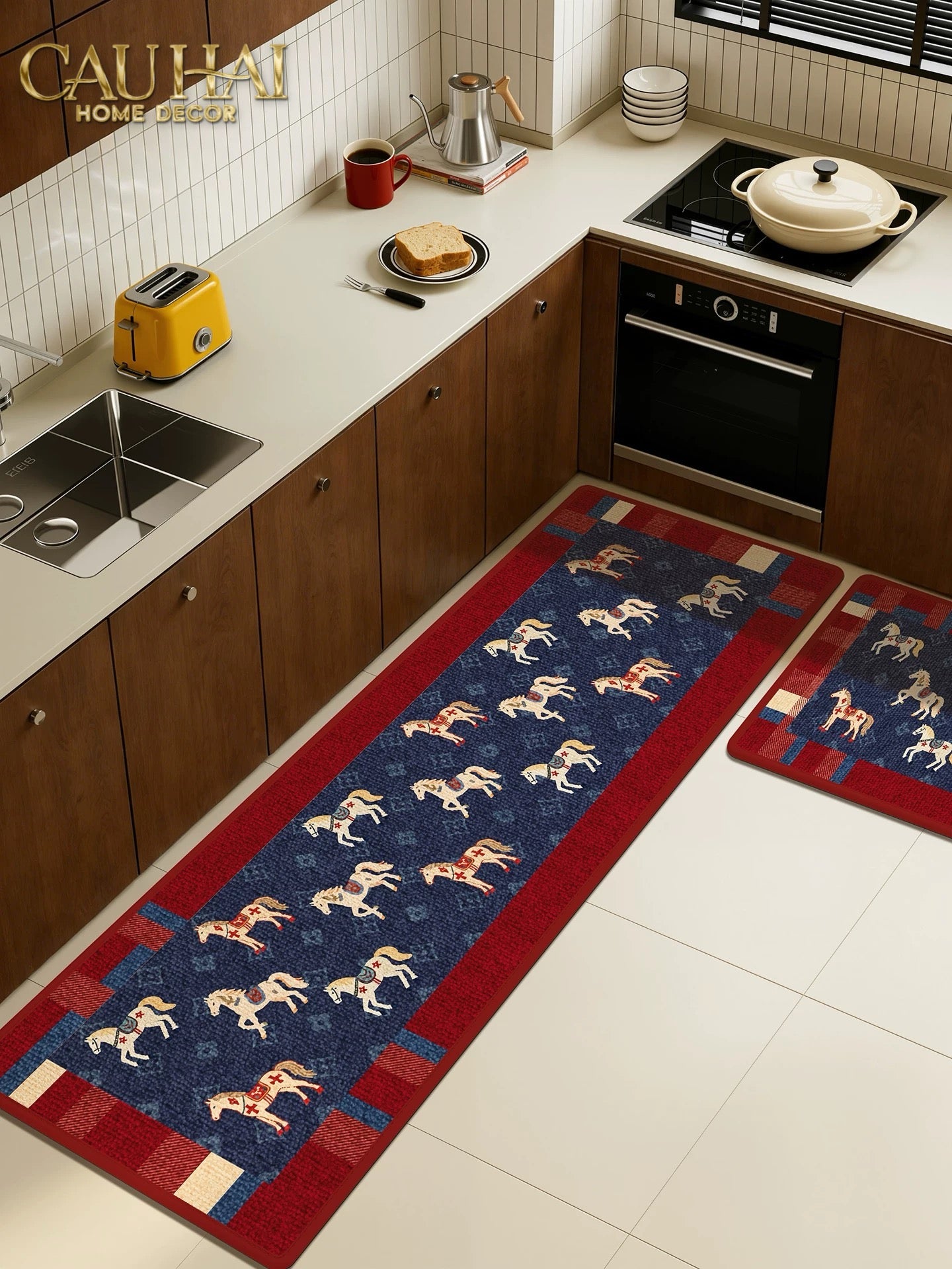 Set thảm bếp Sợi Dệt 45x75/150 Ngựa Hoàng Gia - Petite Équestre Royale Bleu Fleur de Monogram