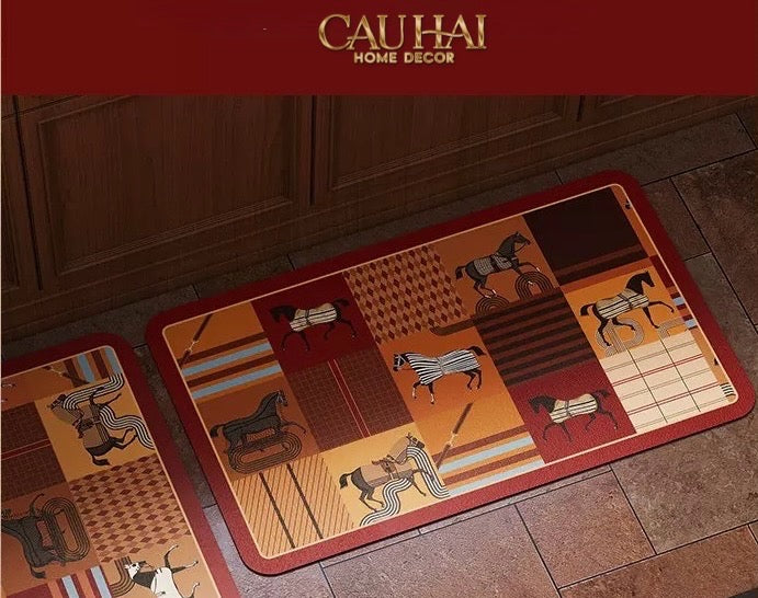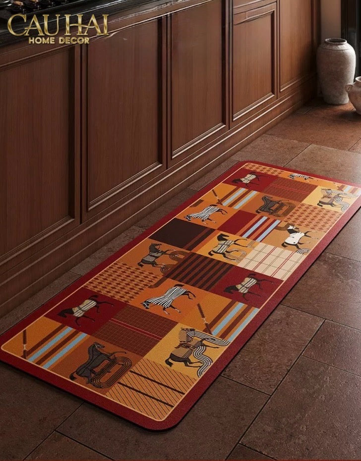 Set Thảm Bếp Microfiber 45x75/150 Patchwork Équestre Crimson Rouge