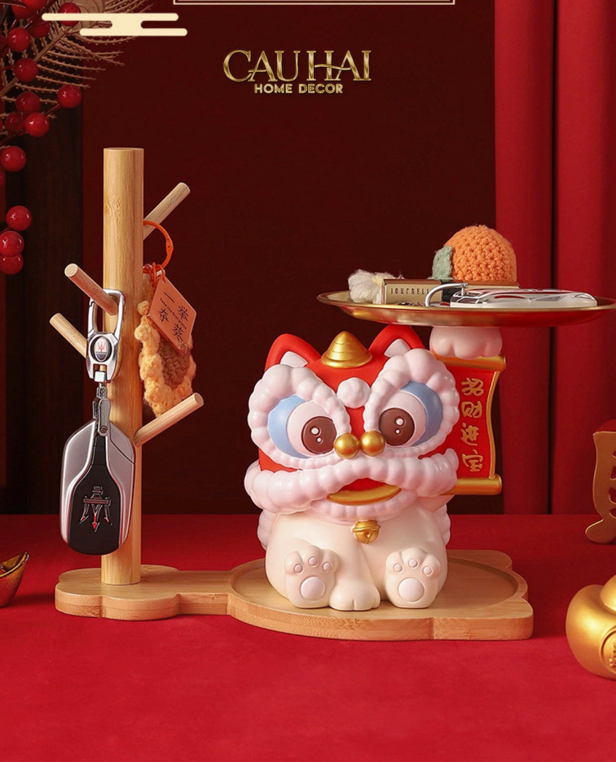 Tết Couture - Tượng Kim Lân Phúc Mãn Đường Guardian Lion Key Figurines Hanging Tree