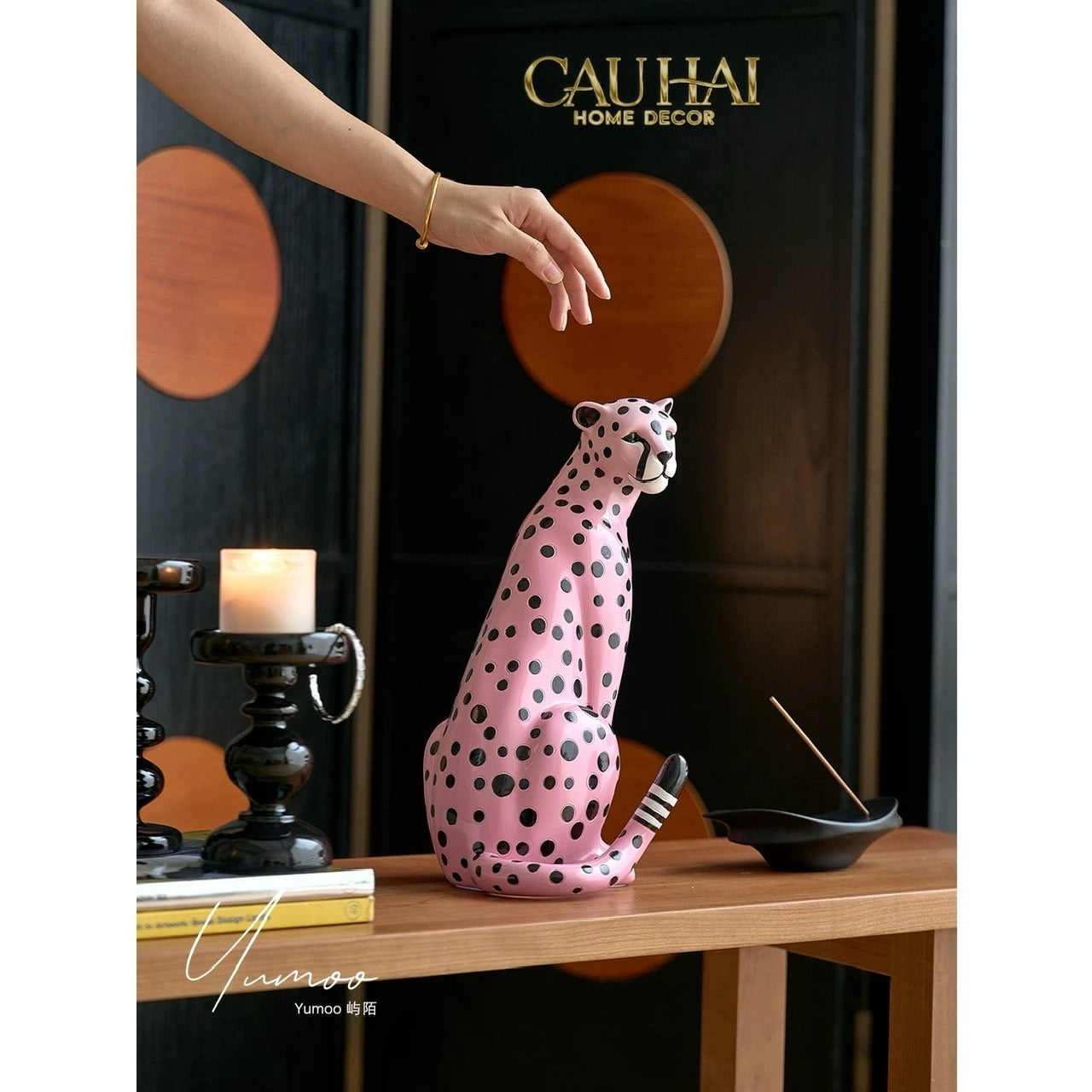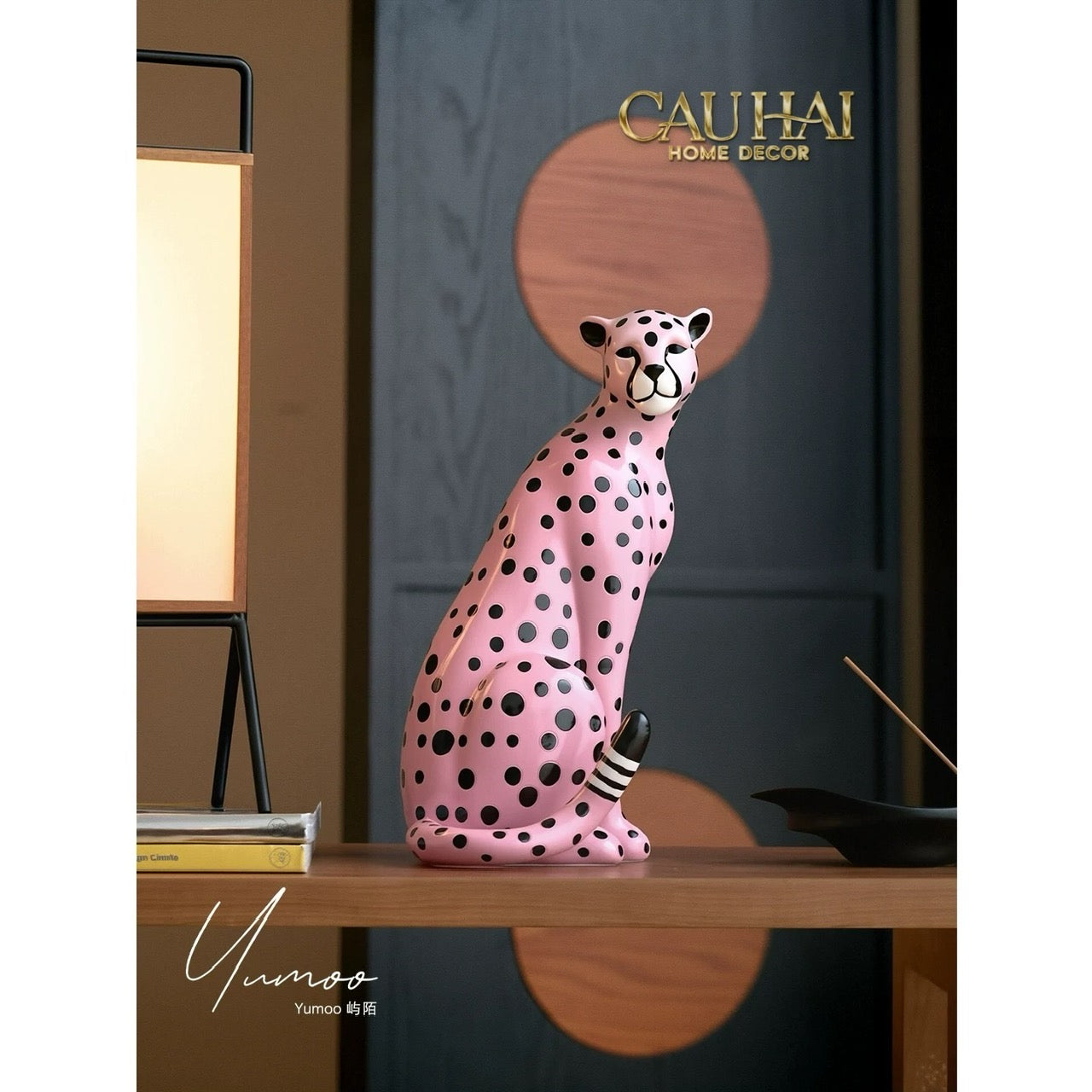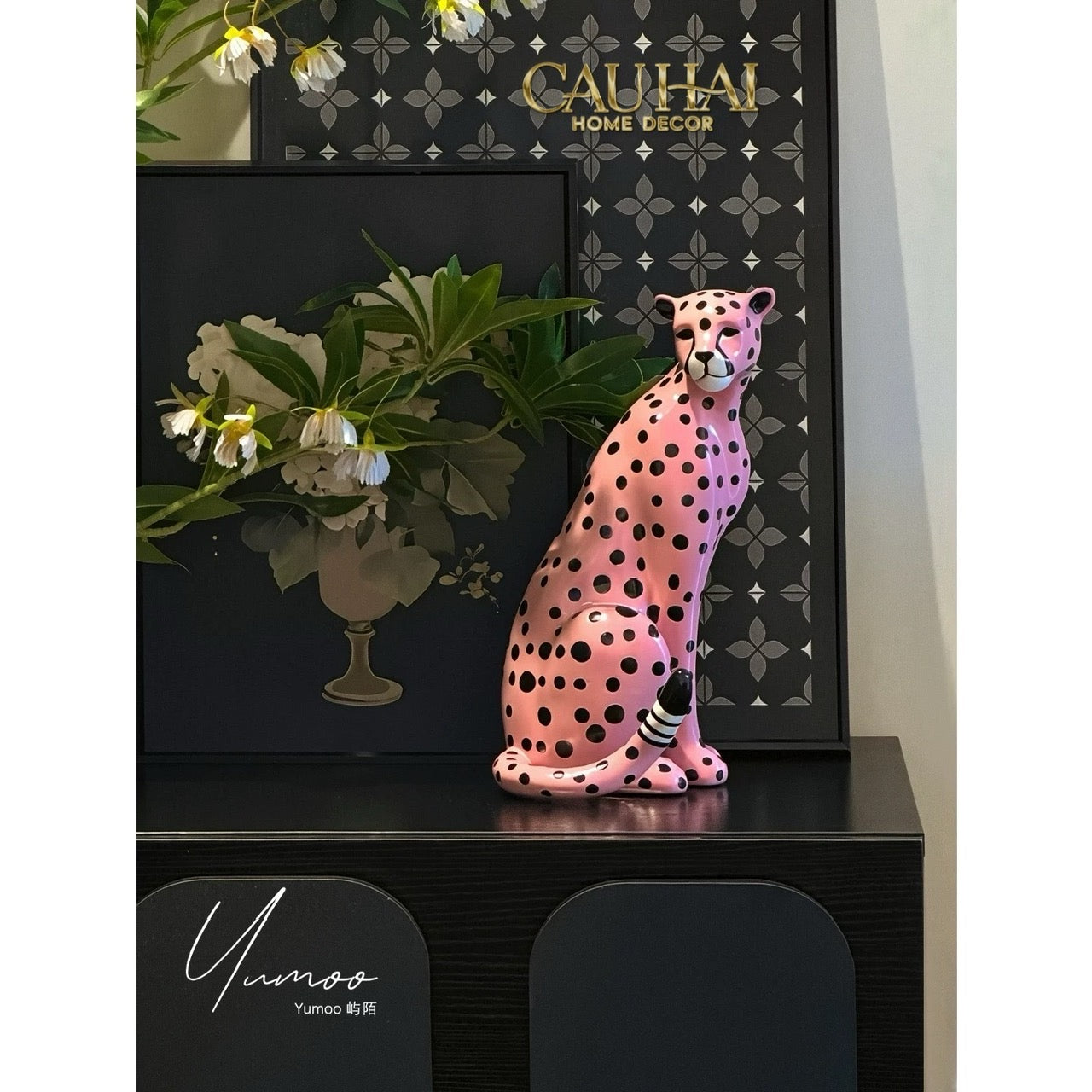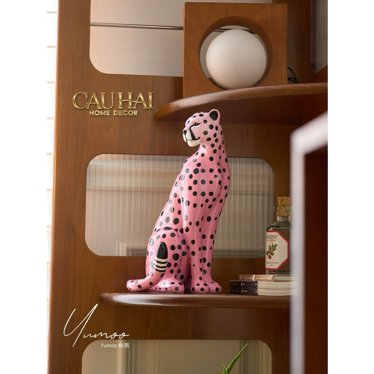 Maison Couture - Tượng Báo Hồng Gốm Sứ Pink Polka Leopard 22x32