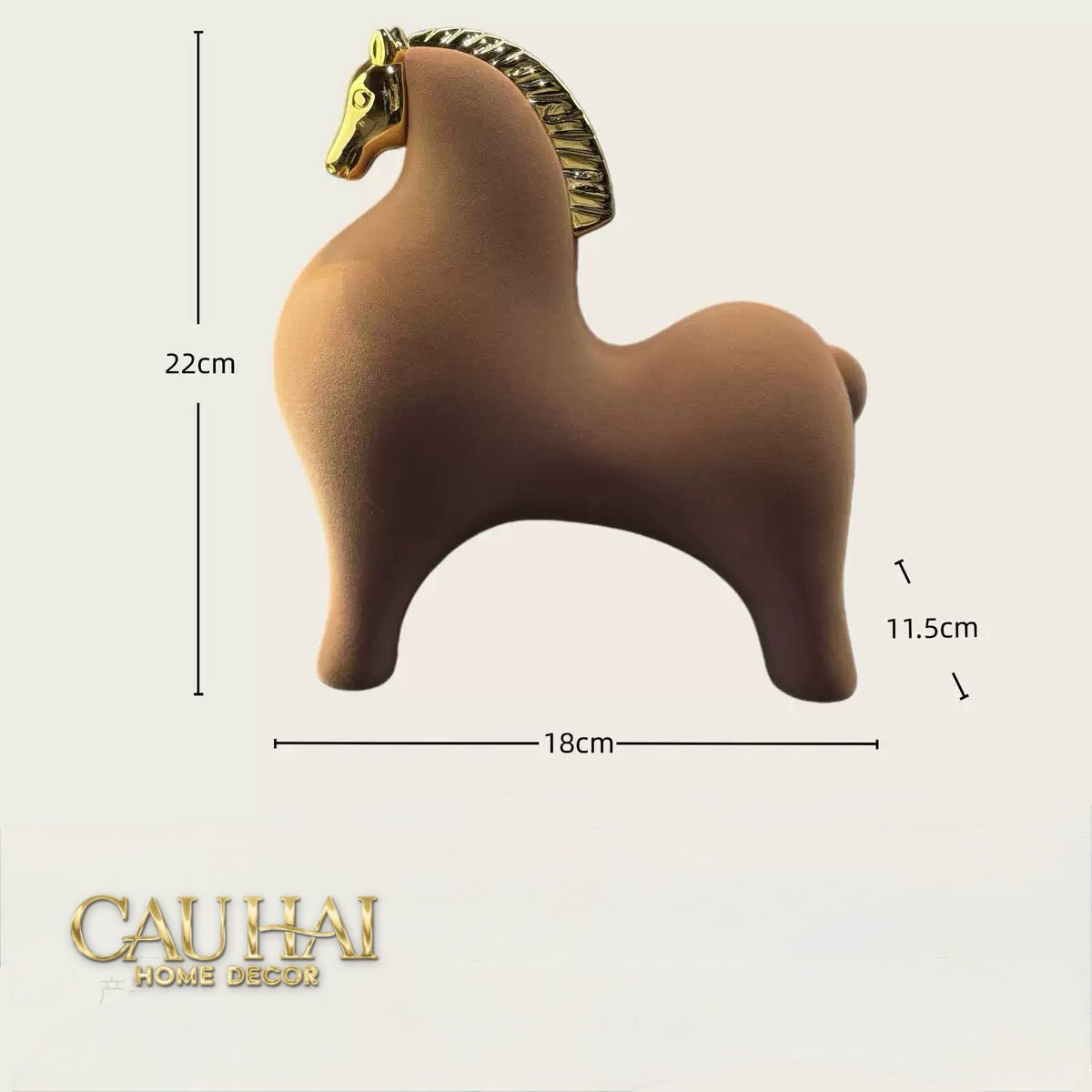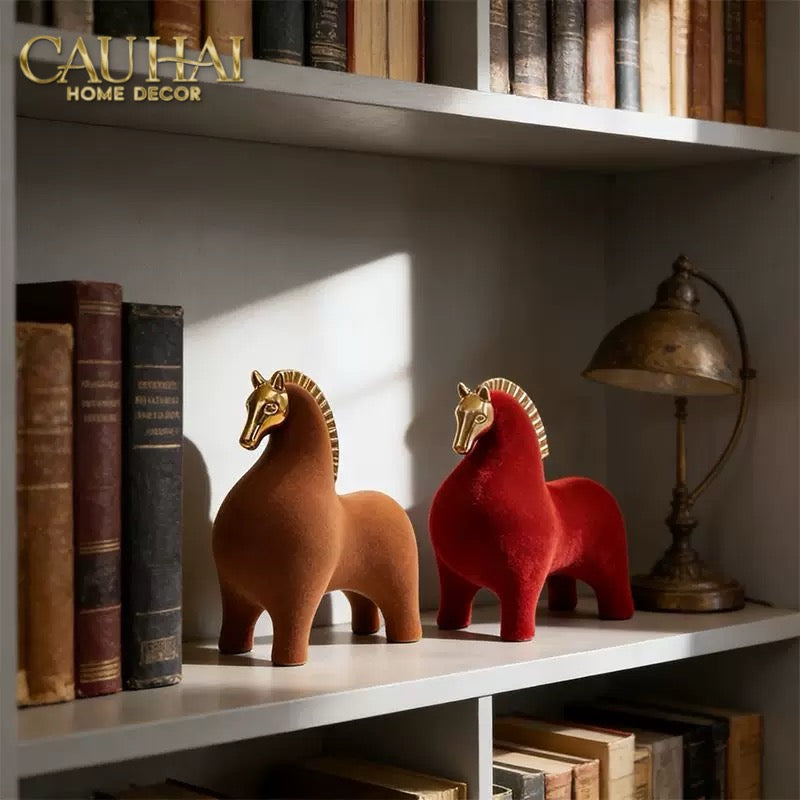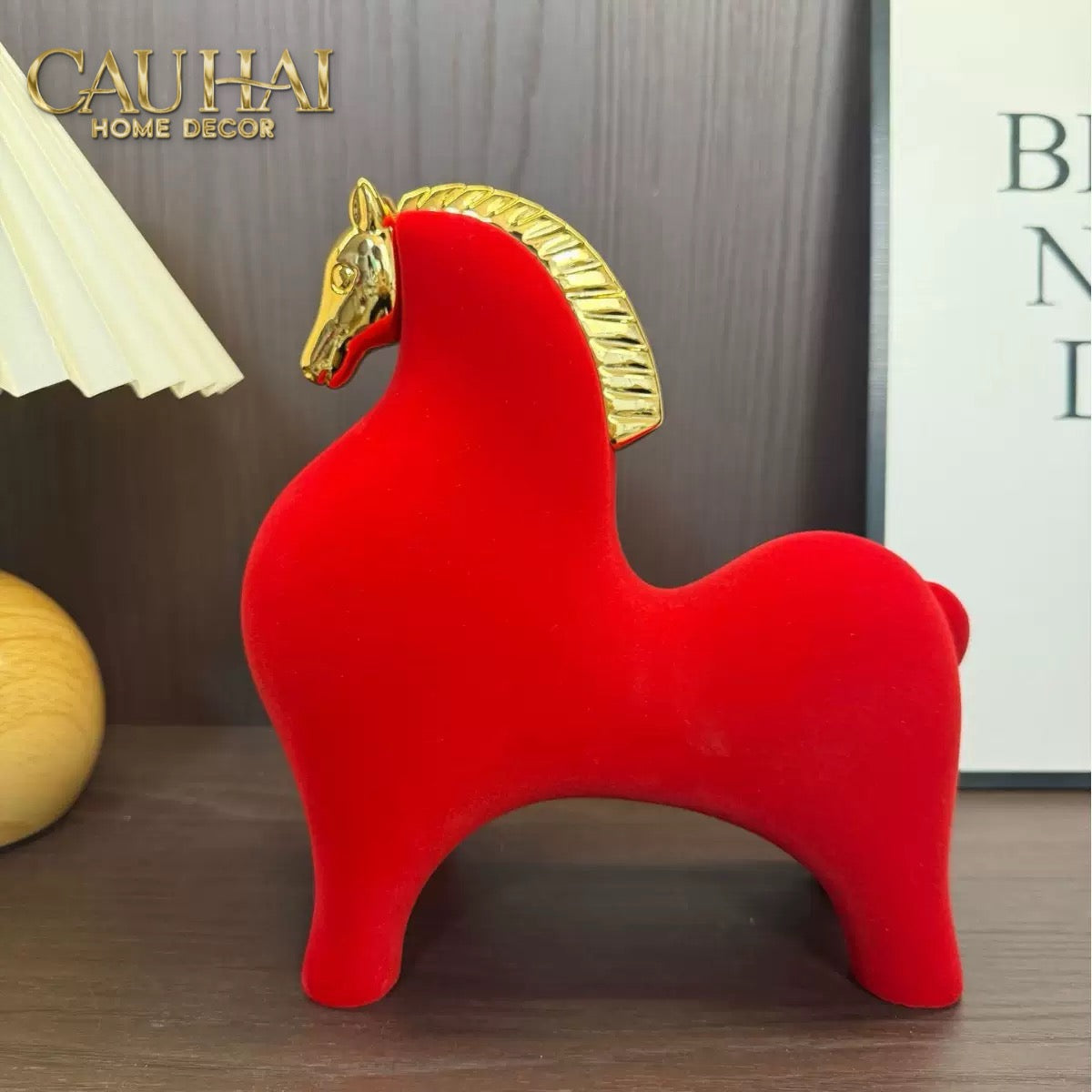Tết Couture - Tượng Ngựa Nhung Đỏ Mạ Vàng - Đại Hồng Mã Phú Quý 18x22