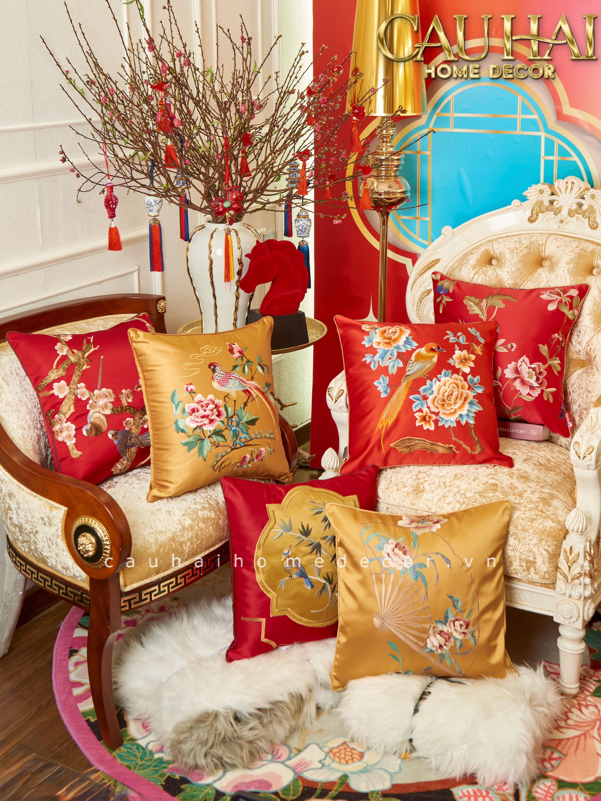 Tết Couture - Vỏ Gối Lụa Thêu Hỷ Trúc Đình 45