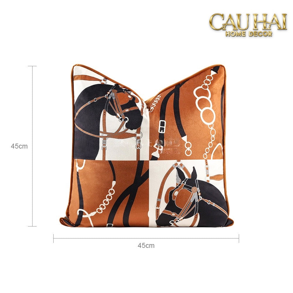 Vỏ Gối Nhung Triptyque Équestre Moderne Cognac 45