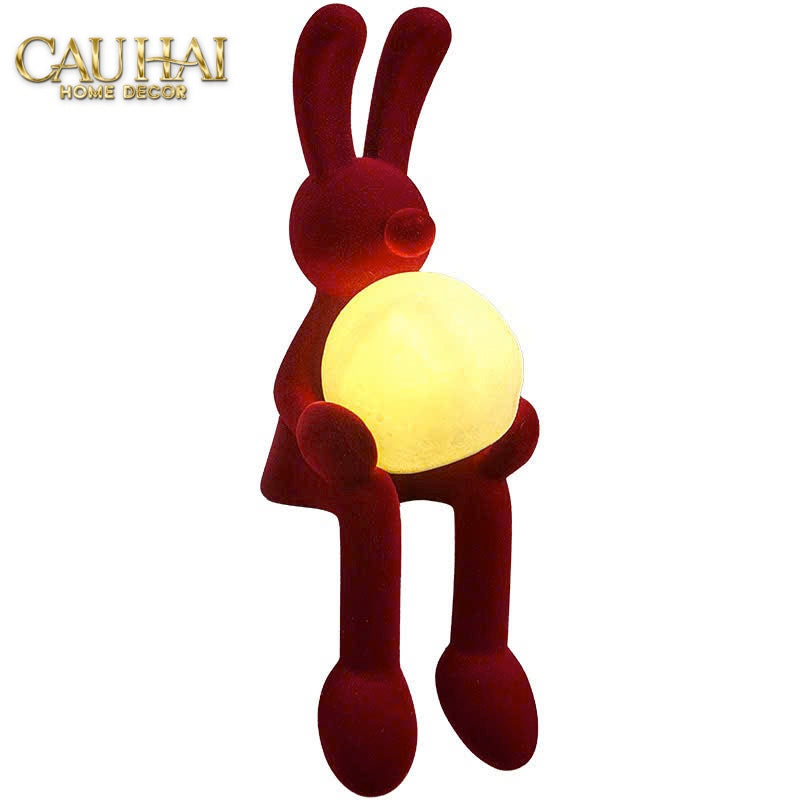Tượng Thỏ Nhung Đỏ Moonlight Rouge Velour Lapin Sculpture Lamp 8.5x26.5