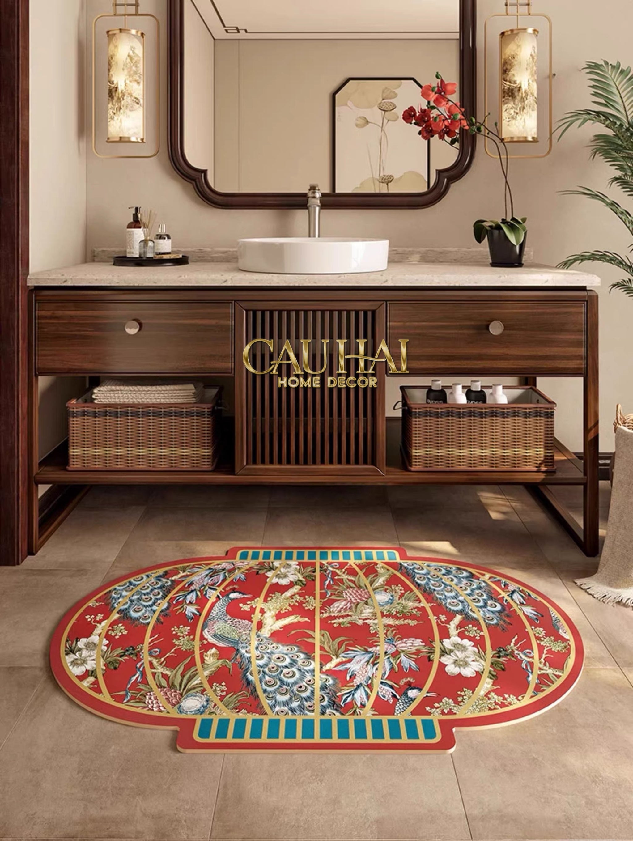 Thảm Cửa Microfiber Gen8 50x80 - Khổng Tước Hỷ Mãn Đường - Spécial Nouvel An - Lantern Dynasty