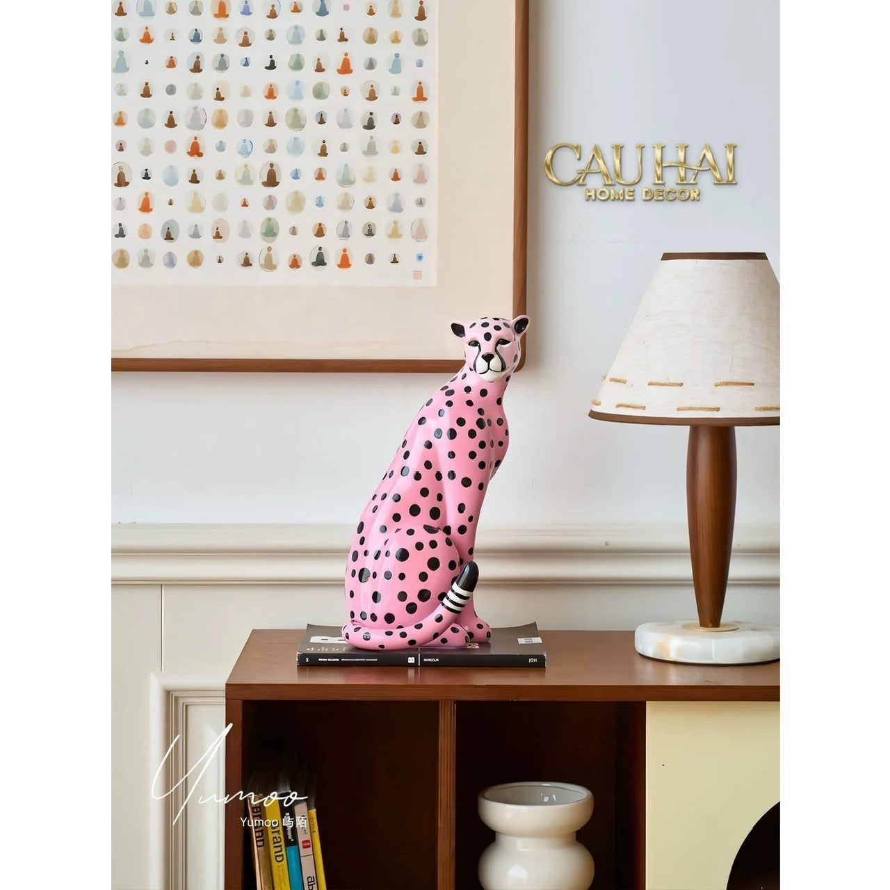Maison Couture - Tượng Báo Hồng Gốm Sứ Pink Polka Leopard 22x32