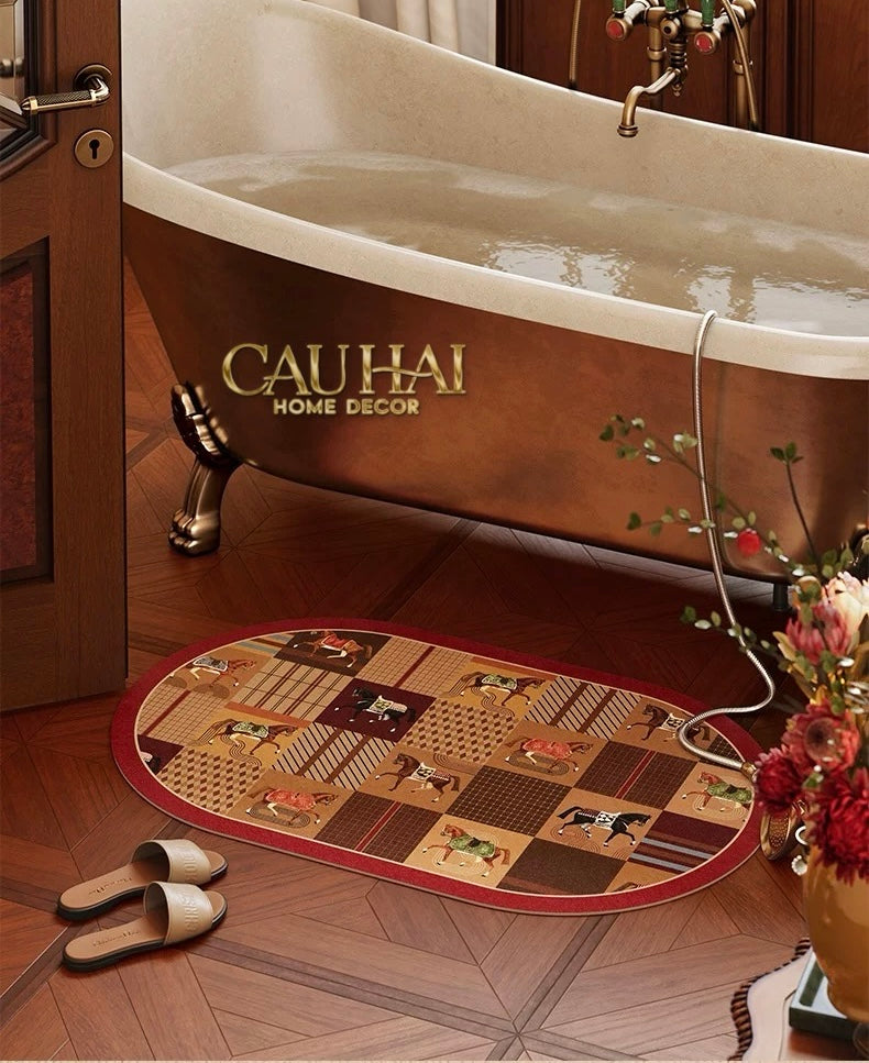 Thảm Cửa Microfiber 50x75 Vermillion Squares Patchwork Équestre