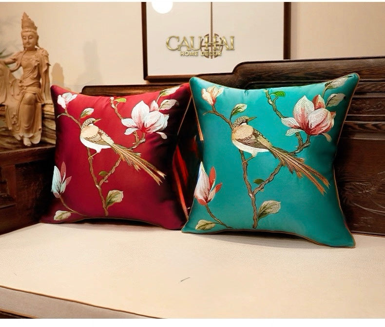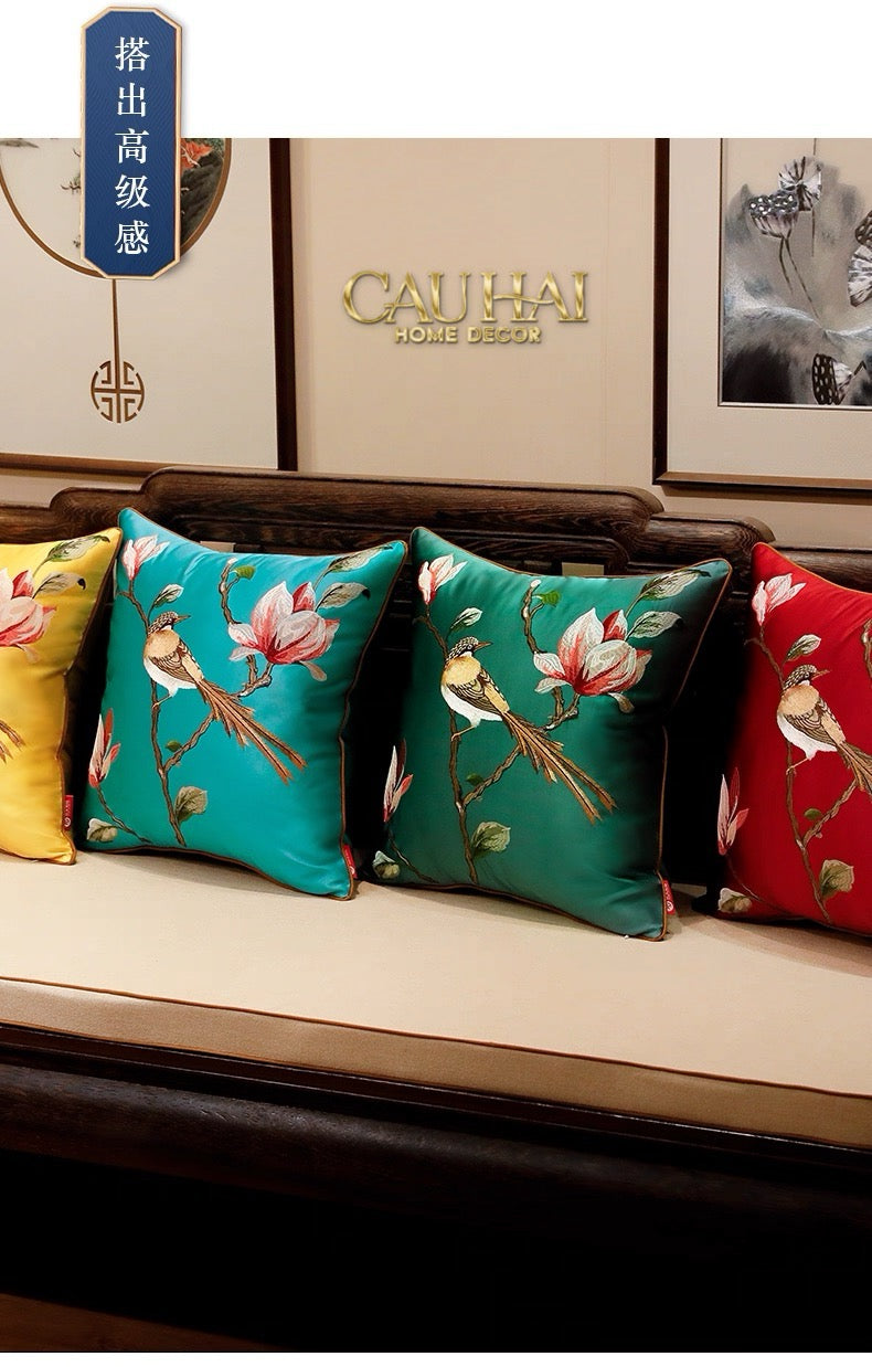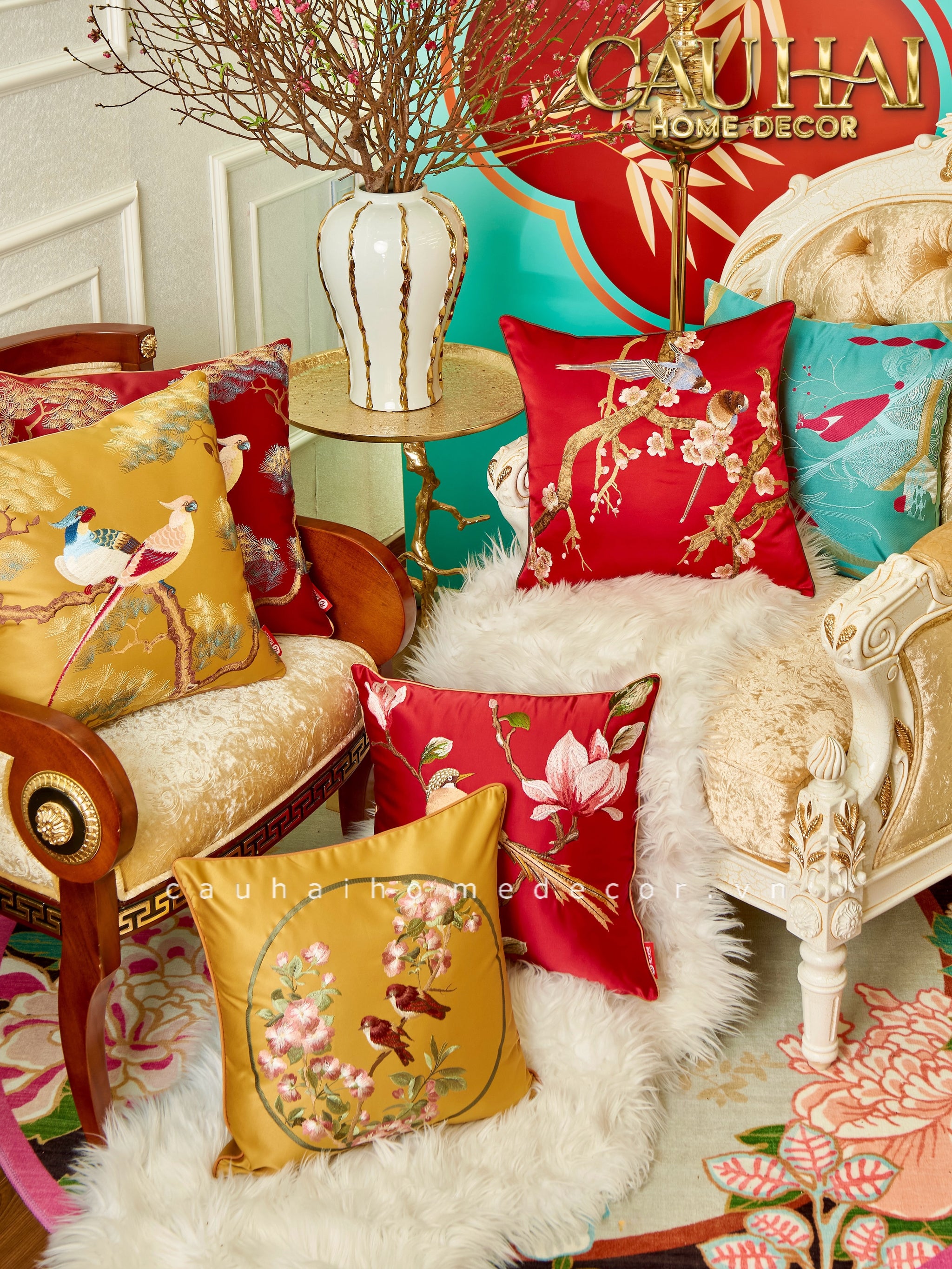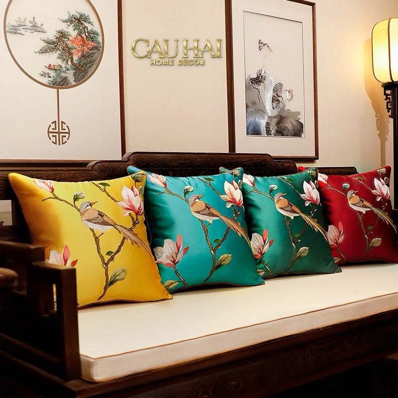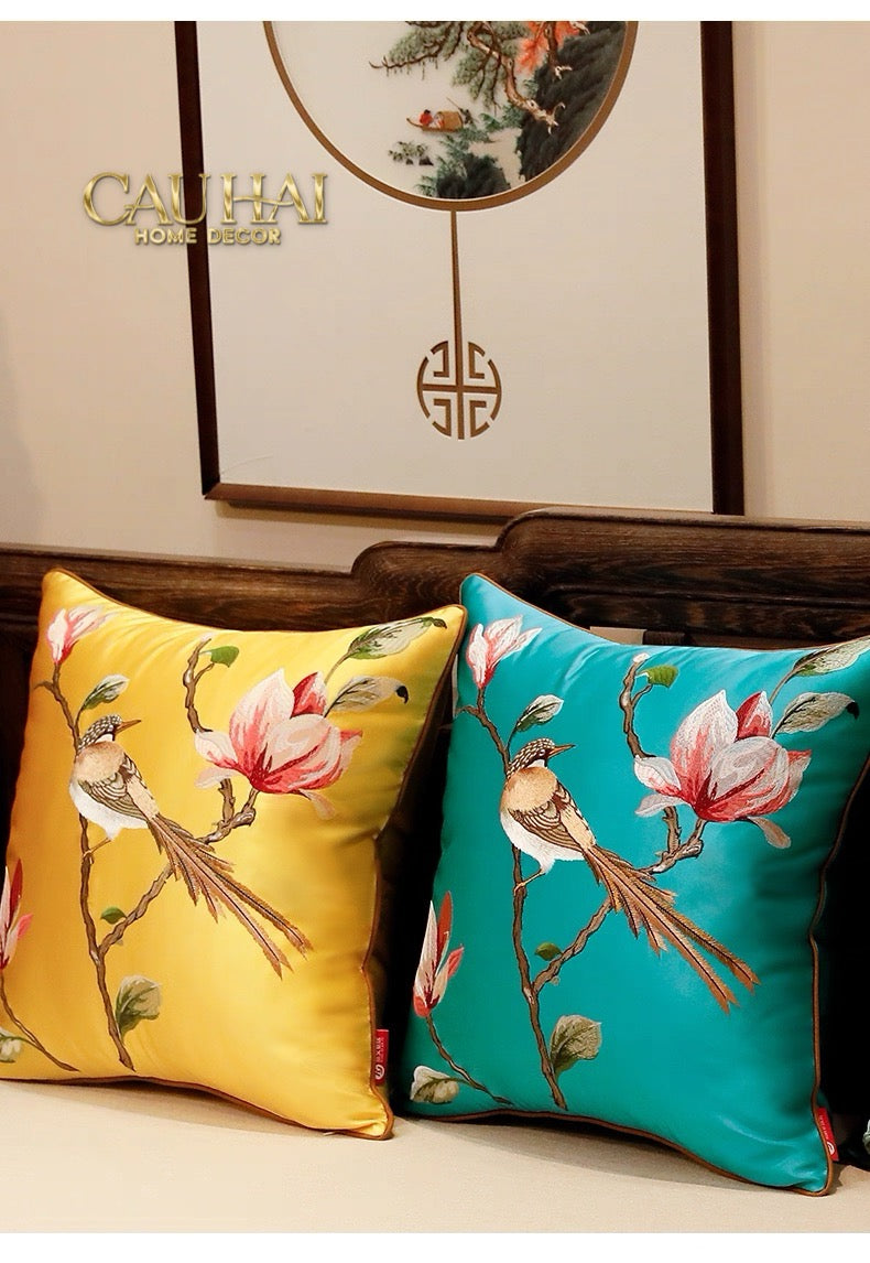 Vỏ Gối Lụa Thêu Hỷ Điểu Cát Tường 45